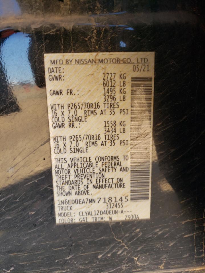NISSAN FRONTIER 3.8 2021 г.в., Задний привод (1N6ED0EA7MN718145) из США