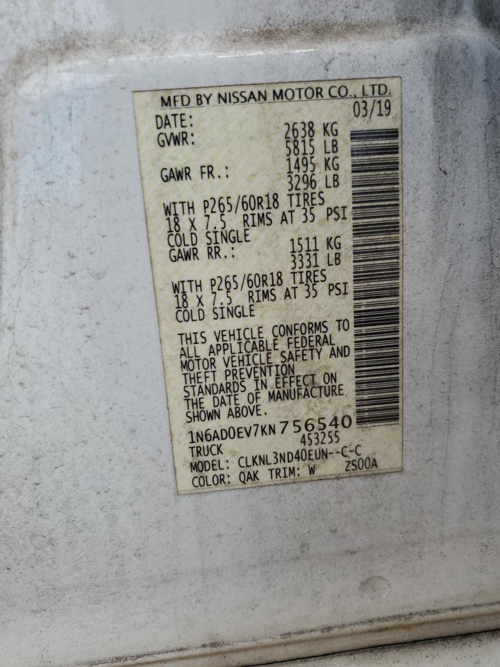 NISSAN FRONTIER 4.0 2019 г.в., 4x4 с задним приводом (1N6AD0EV7KN756540) из США