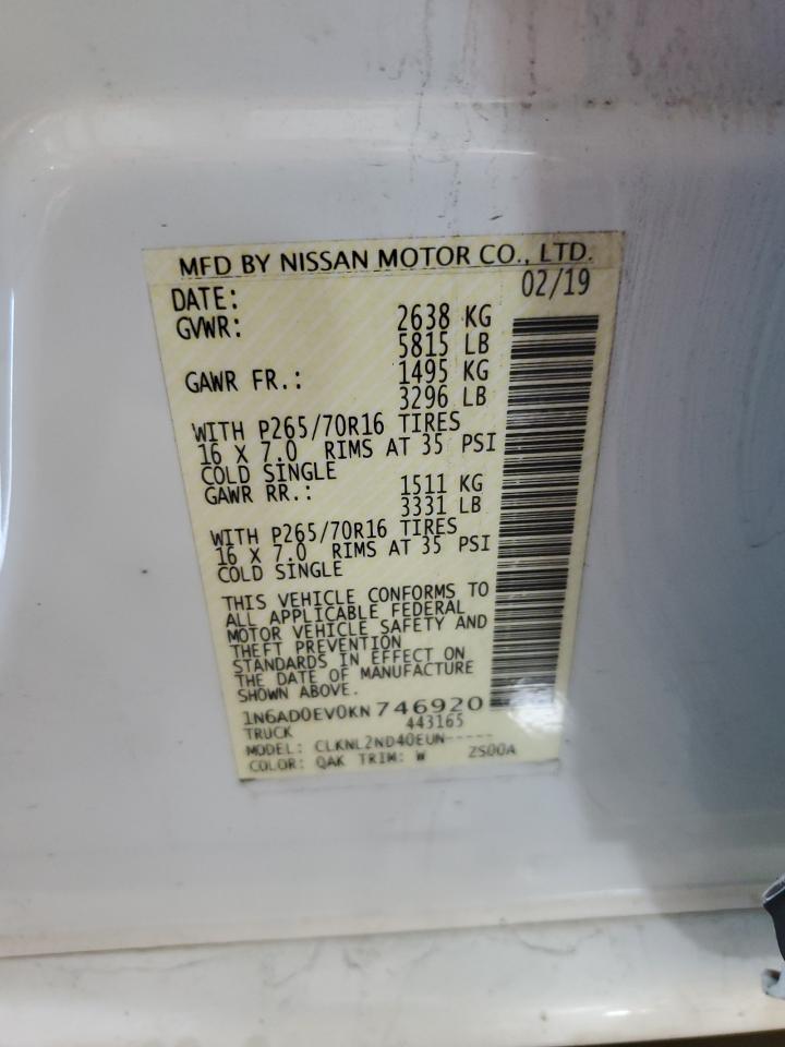 NISSAN FRONTIER 4.0 2019 г.в., 4x4 с задним приводом (1N6AD0EV0KN746920) из США
