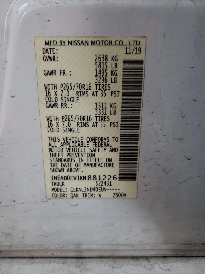 NISSAN FRONTIER 4.0 2019 г.в., 4x4 с задним приводом (1N6AD0EV1KN881226) из США