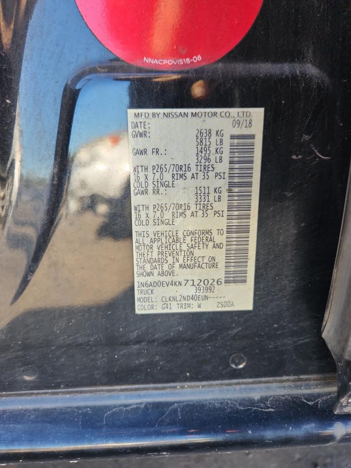 NISSAN FRONTIER 4.0 2019 г.в., 4x4 с задним приводом (1N6AD0EV4KN712026) из США