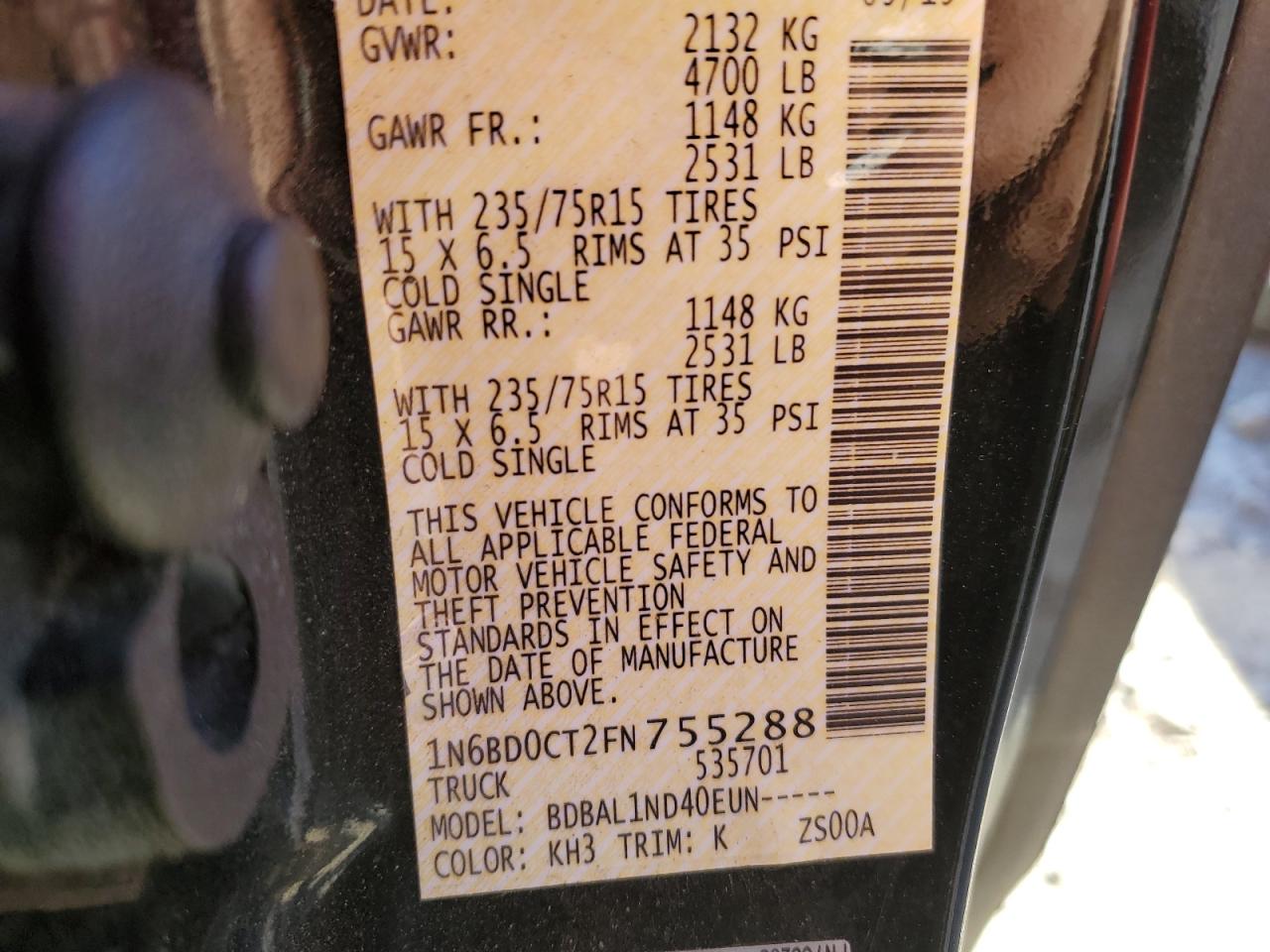 NISSAN FRONTIER 2.5 2015 г.в., Задний привод (1N6BD0CT2FN755288) из США