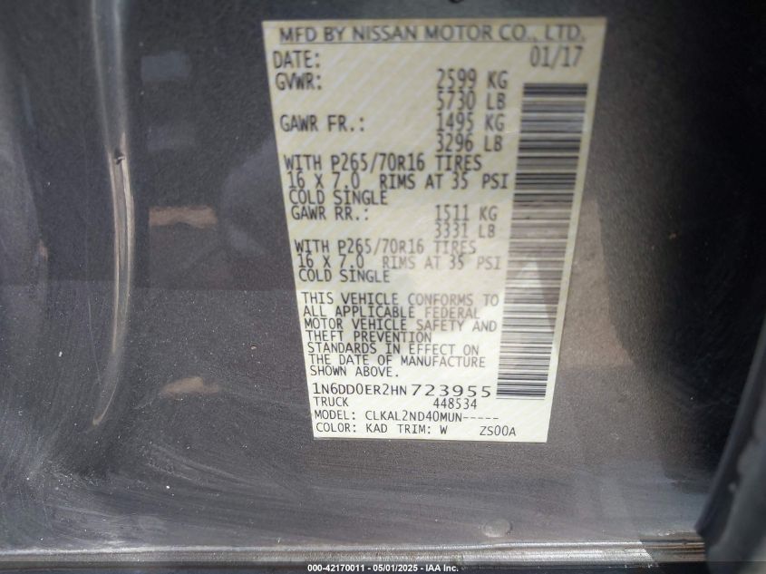 NISSAN FRONTIER 4.0 2017 г.в., (1N6DD0ER2HN723955) из США