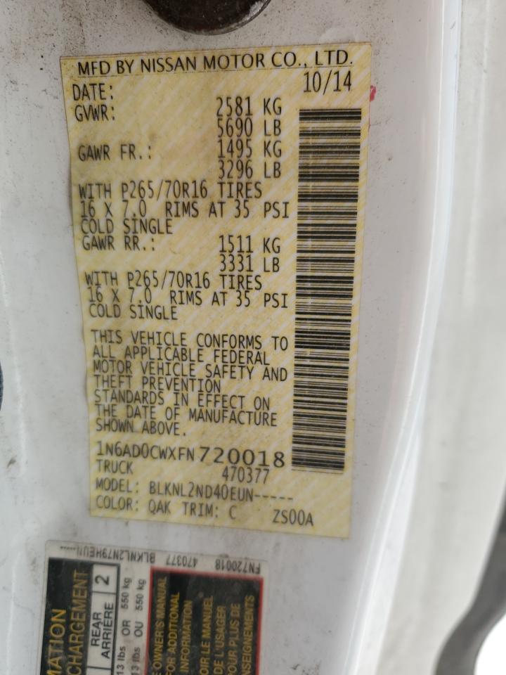 NISSAN FRONTIER 4.0 2015 г.в., 4x4 с задним приводом (1N6AD0CWXFN720018) из США