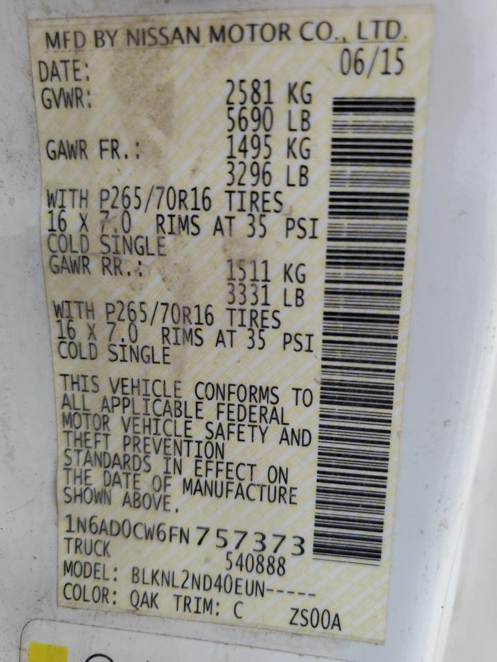 NISSAN FRONTIER 4.0 2015 г.в., 4x4 с задним приводом (1N6AD0CW6FN757373) из США