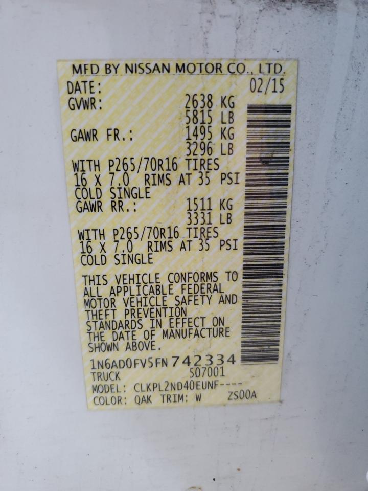 NISSAN FRONTIER 4.0 2015 г.в., 4x4 с задним приводом (1N6AD0FV5FN742334) из США