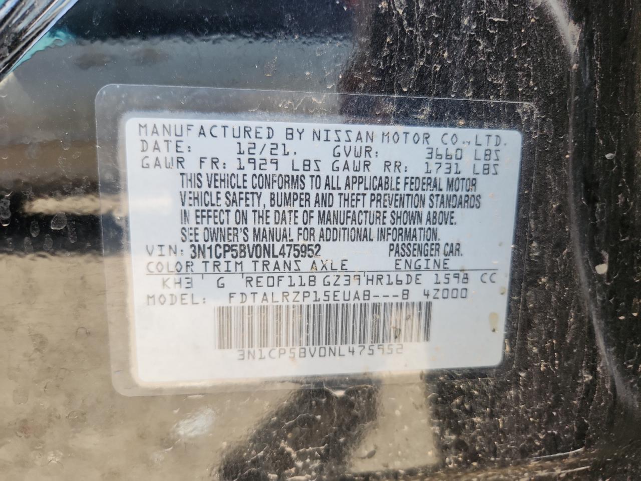 Цвет ЧерныйЦилиндры 4VIN 3N1CP5BV0NL475952Состояние Заводится и едет (проверено)Повреждение Передняя или задняяДата аукциона 2025-11-06