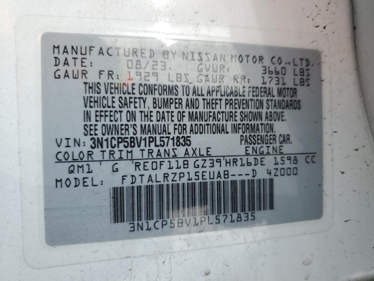 Цвет БелыйЦилиндры 4VIN 3N1CP5BV1PL571835Состояние Заводится и едет (проверено)Повреждение По бокамДата аукциона 2025-11-14