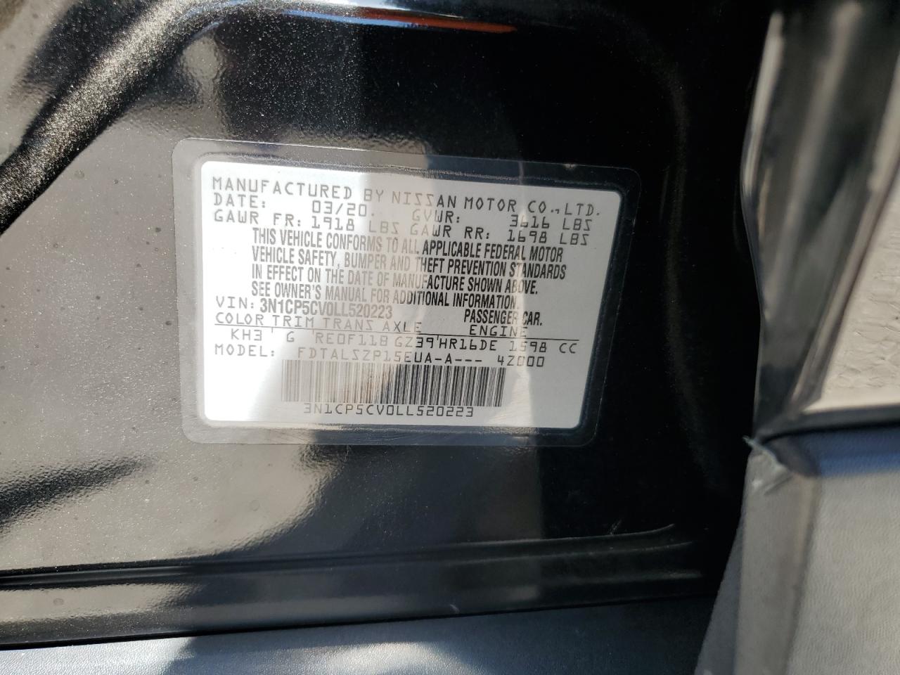 Цвет ЧерныйЦилиндры 4VIN 3N1CP5CV0LL520223Состояние НеизвестноПовреждение Передняя или задняя