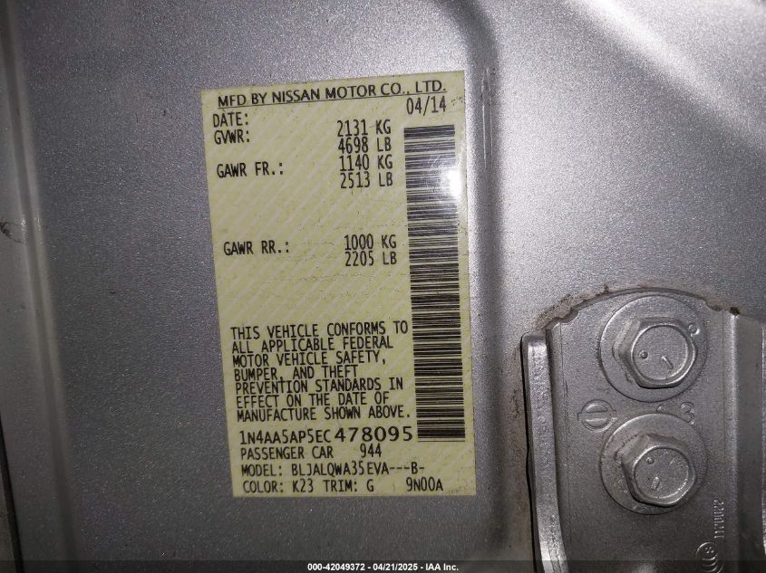 NISSAN MAXIMA 3.5 2014 г.в., Передний привод (1N4AA5AP5EC478095) из США