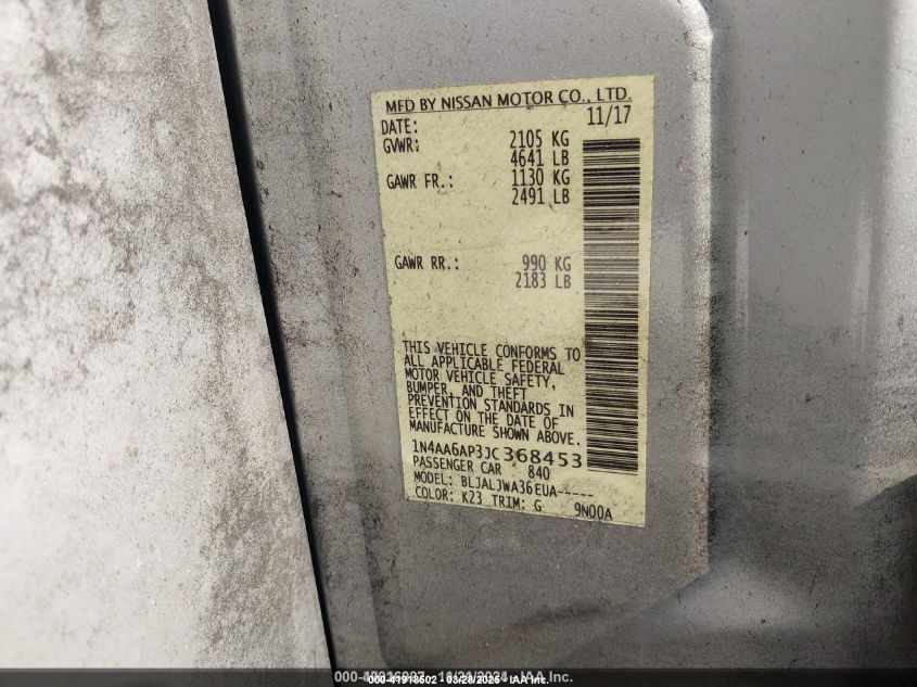 Цвет СеребряныйЦилиндры 6Привод Передний приводVIN 1N4AA6AP3JC368453Состояние Заводится и едет (проверено)Повреждение Передняя или задняя