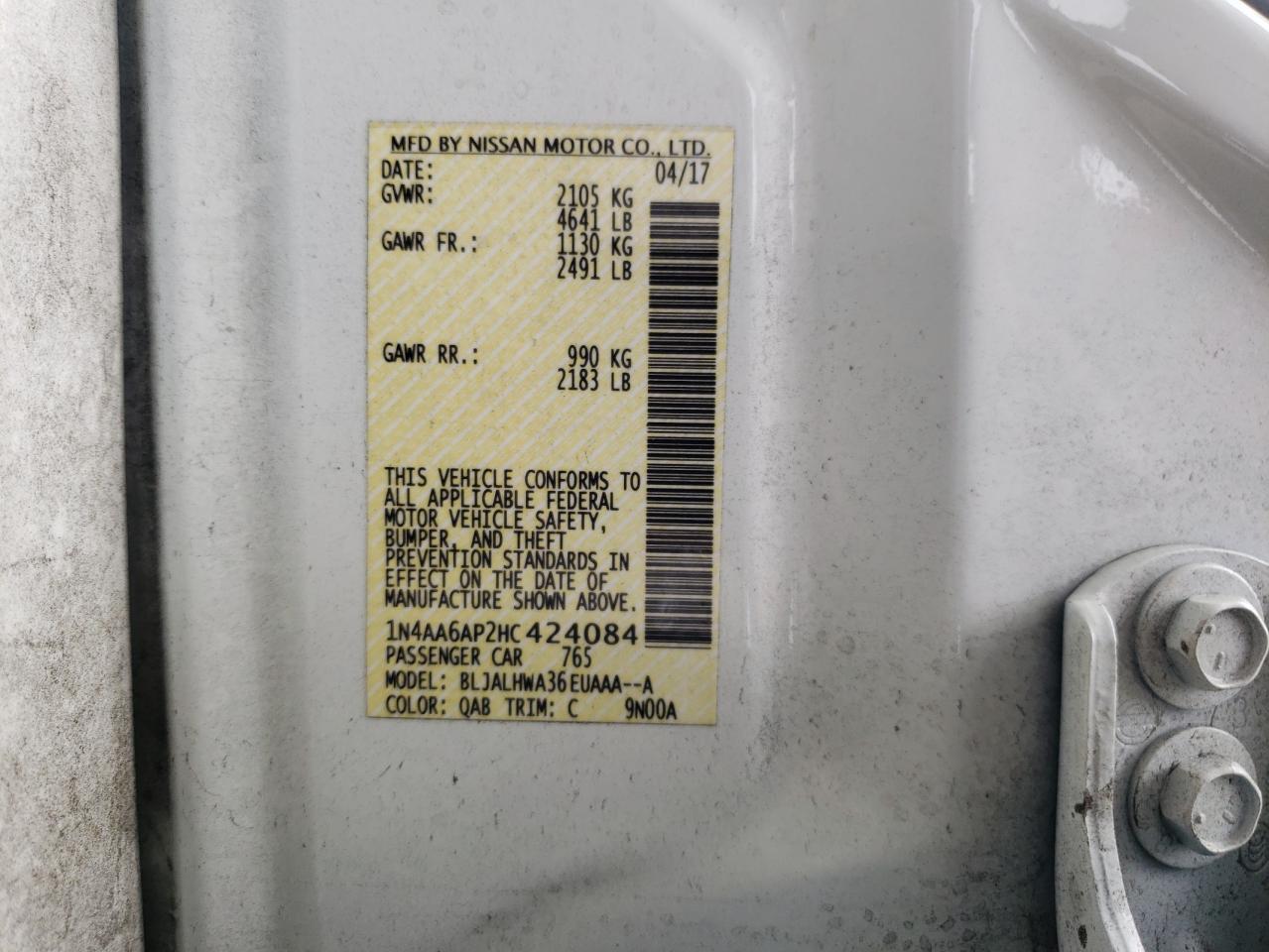 NISSAN MAXIMA 3.5 2017 г.в., (1N4AA6AP2HC424084) из США