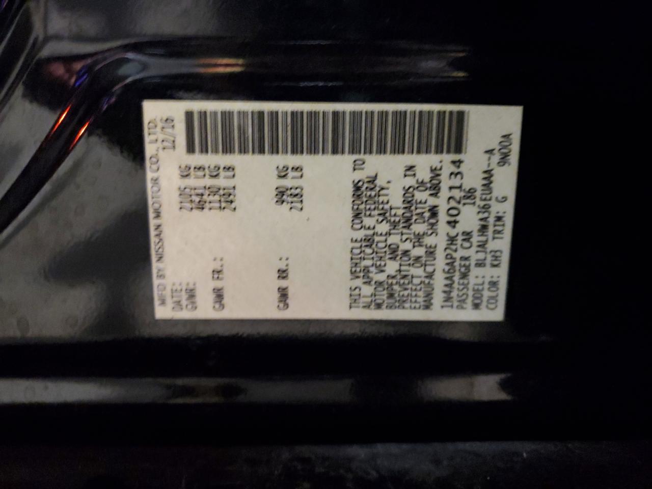 Цвет ЧерныйЦилиндры 6VIN 1N4AA6AP2HC402134Состояние Заводится и едет (проверено)Повреждение Задняя