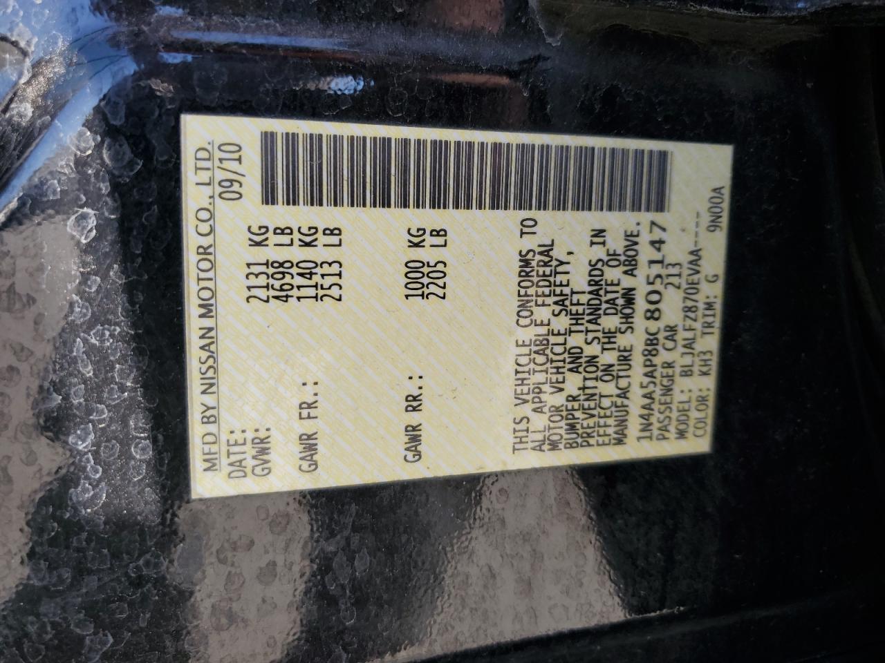 NISSAN MAXIMA 3.5 2011 г.в., (1N4AA5AP8BC805147) из США