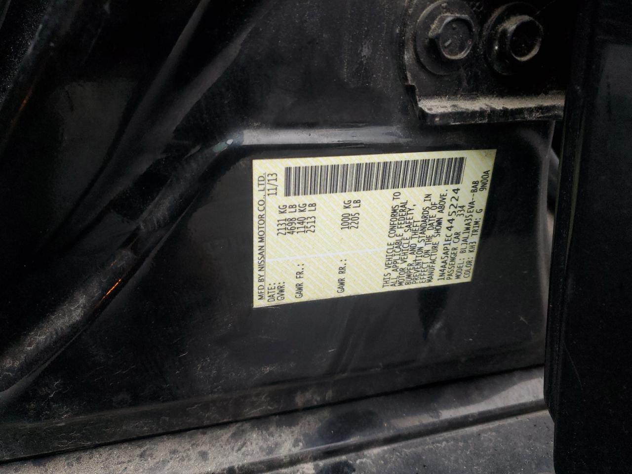 Цвет ЧерныйЦилиндры 6VIN 1N4AA5AP1EC445224Состояние НеизвестноПовреждение Задняя