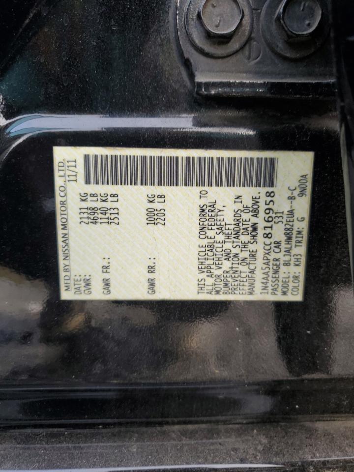Цвет ЧерныйЦилиндры 6VIN 1N4AA5APXCC816958Состояние НеизвестноПовреждение Передняя или задняя