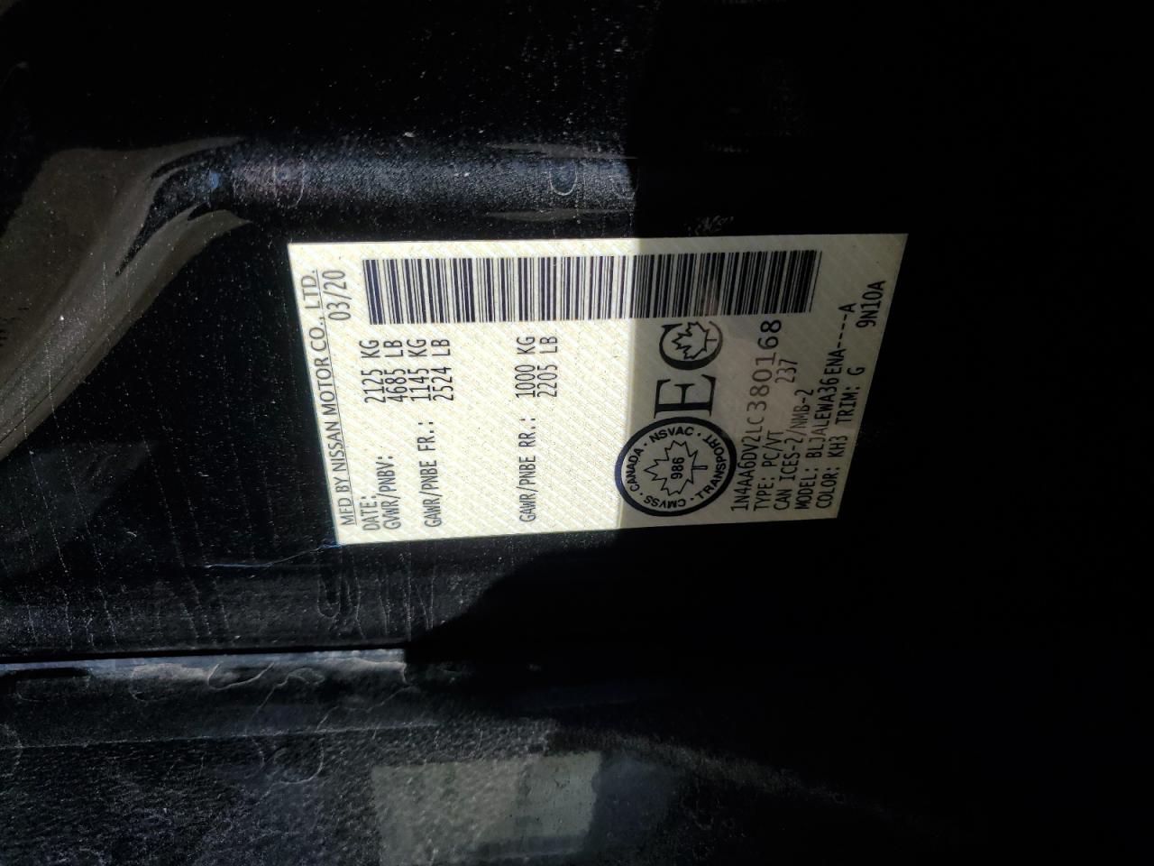 Цвет ЧерныйЦилиндры 6VIN 1N4AA6DV2LC380168Состояние Заводится и едет (проверено)Повреждение Передняя или задняя