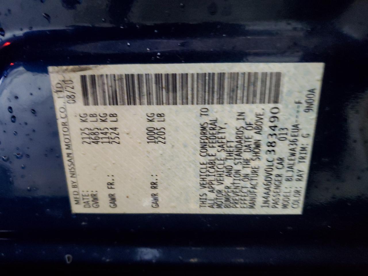Цвет СинийЦилиндры 6VIN 1N4AA6DV0LC383490Состояние Заводится и едет (проверено)Повреждение Задняя