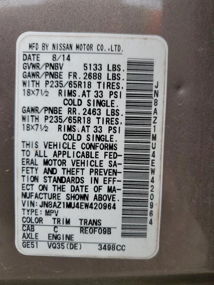 NISSAN MURANO 3.5 2014 г.в., (JN8AZ1MU4EW420964) из США