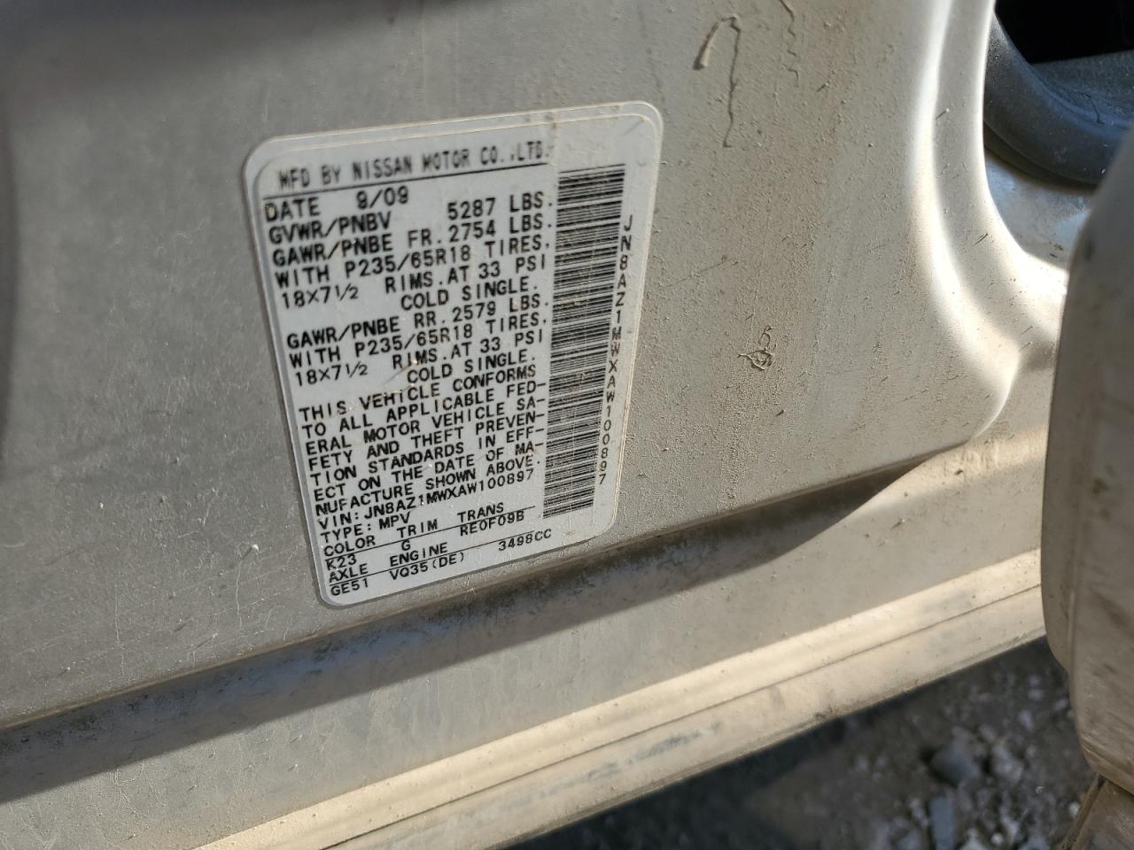 NISSAN MURANO 3.5 2010 г.в., Полный привод (JN8AZ1MWXAW100897) из США