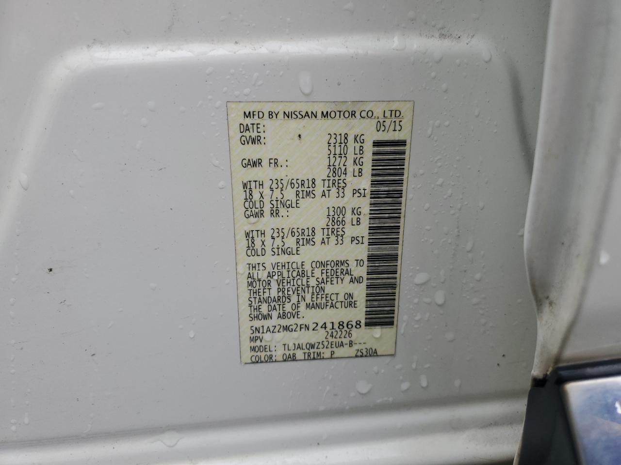 NISSAN MURANO 3.5 2015 г.в., (5N1AZ2MG2FN241868) из США