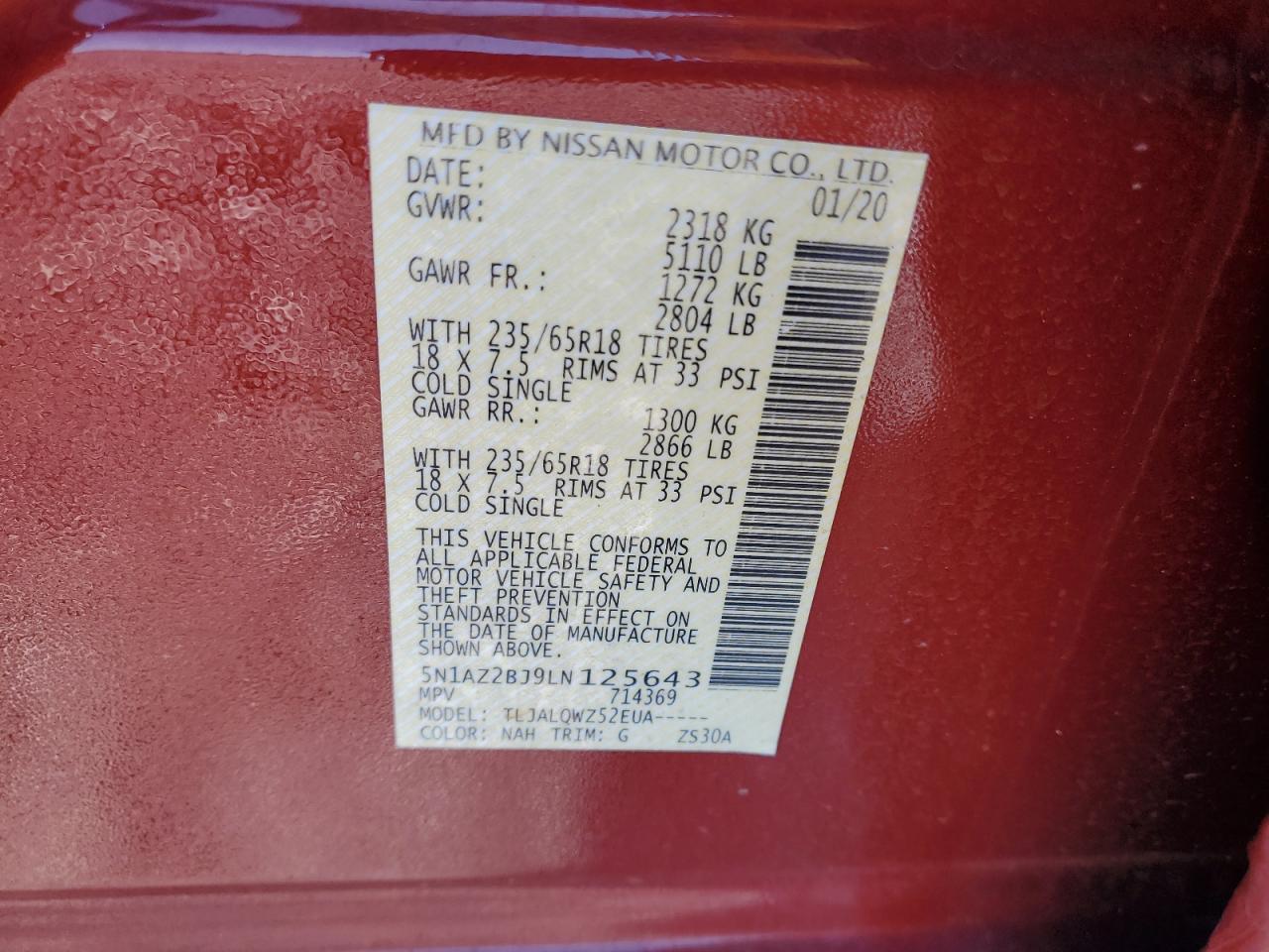 NISSAN MURANO 3.5 2020 г.в., (5N1AZ2BJ9LN125643) из США
