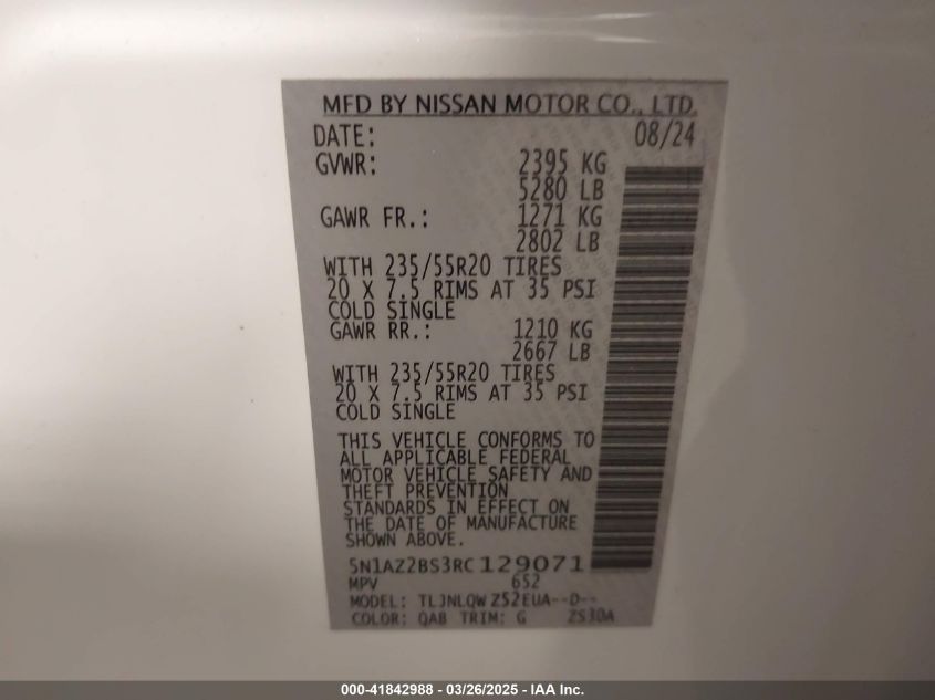 NISSAN MURANO 3.5 2024 г.в., Полный привод (5N1AZ2BS3RC129071) из США
