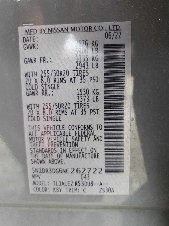 NISSAN PATHFINDER 3.5 2022 г.в., (5N1DR3DG6NC262722) из США