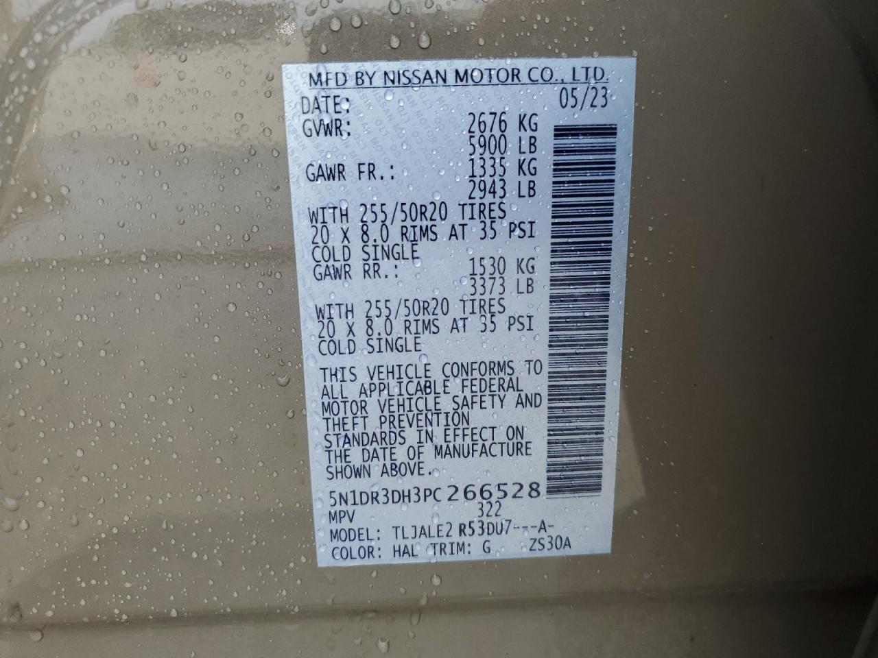 NISSAN PATHFINDER 3.5 2023 г.в., (5N1DR3DH3PC266528) из США
