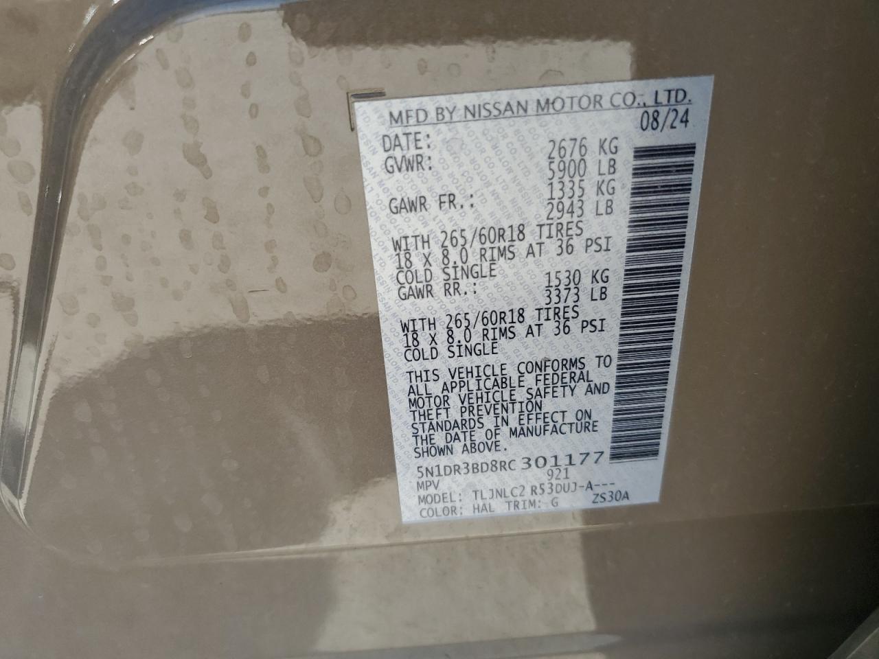 NISSAN PATHFINDER 3.5 2024 г.в., 4x4 с передним приводом (5N1DR3BD8RC301177) из США