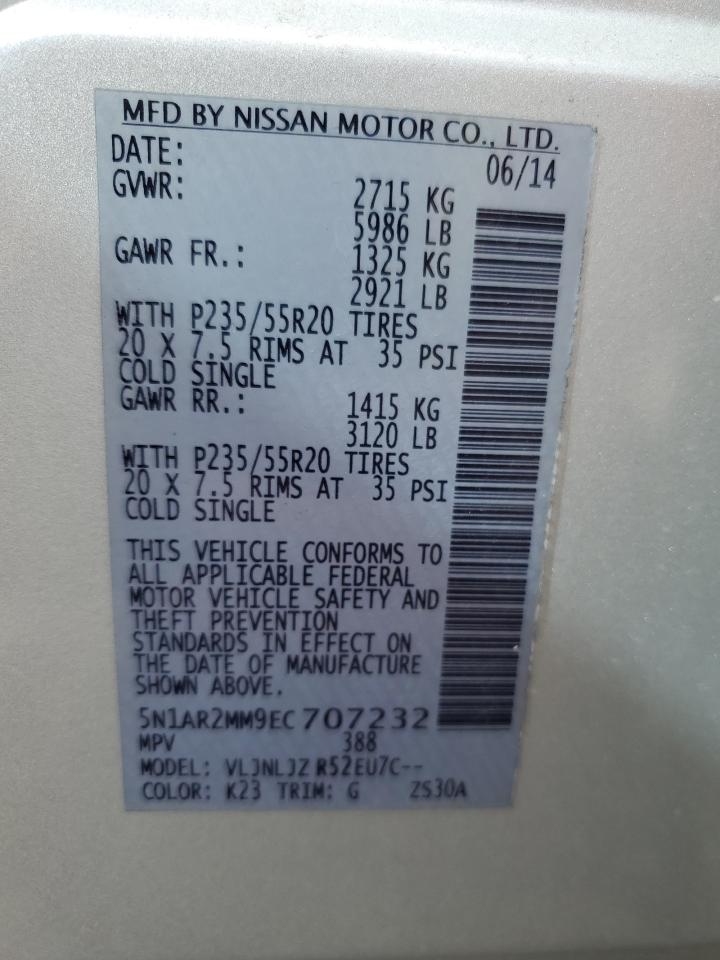 NISSAN PATHFINDER 3.5 2014 г.в., 4x4 с передним приводом (5N1AR2MM9EC707232) из США
