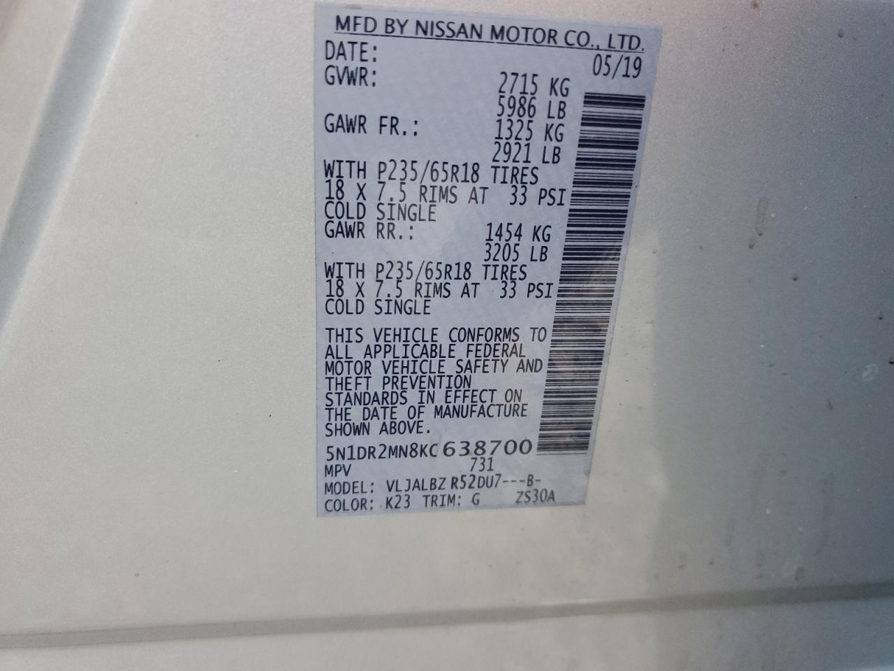 NISSAN PATHFINDER 3.5 2019 г.в., (5N1DR2MN8KC638700) из США