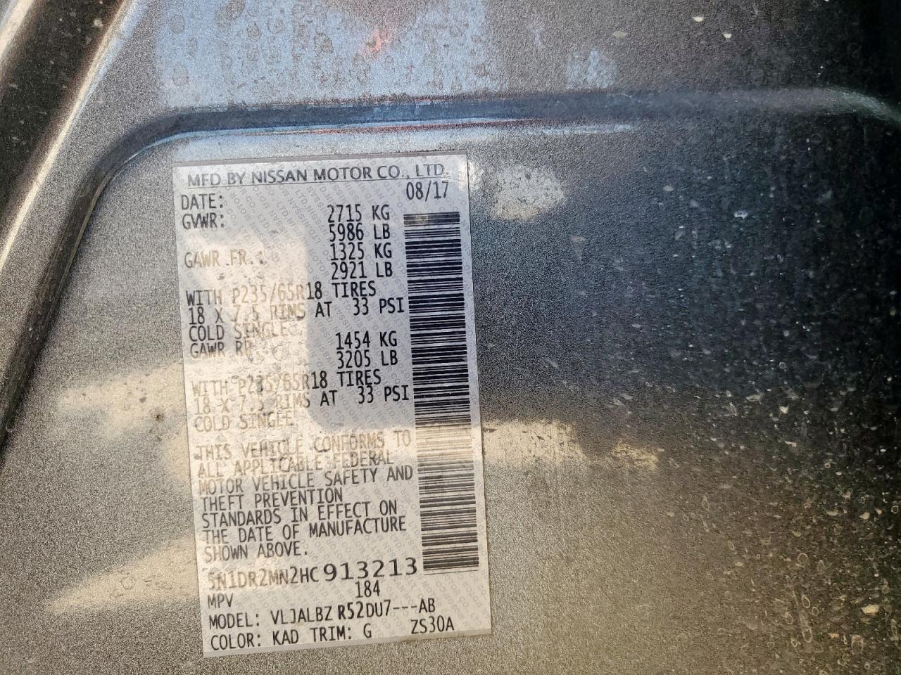 2017 NISSAN PATHFINDER PLATINUM/S/SL/SV