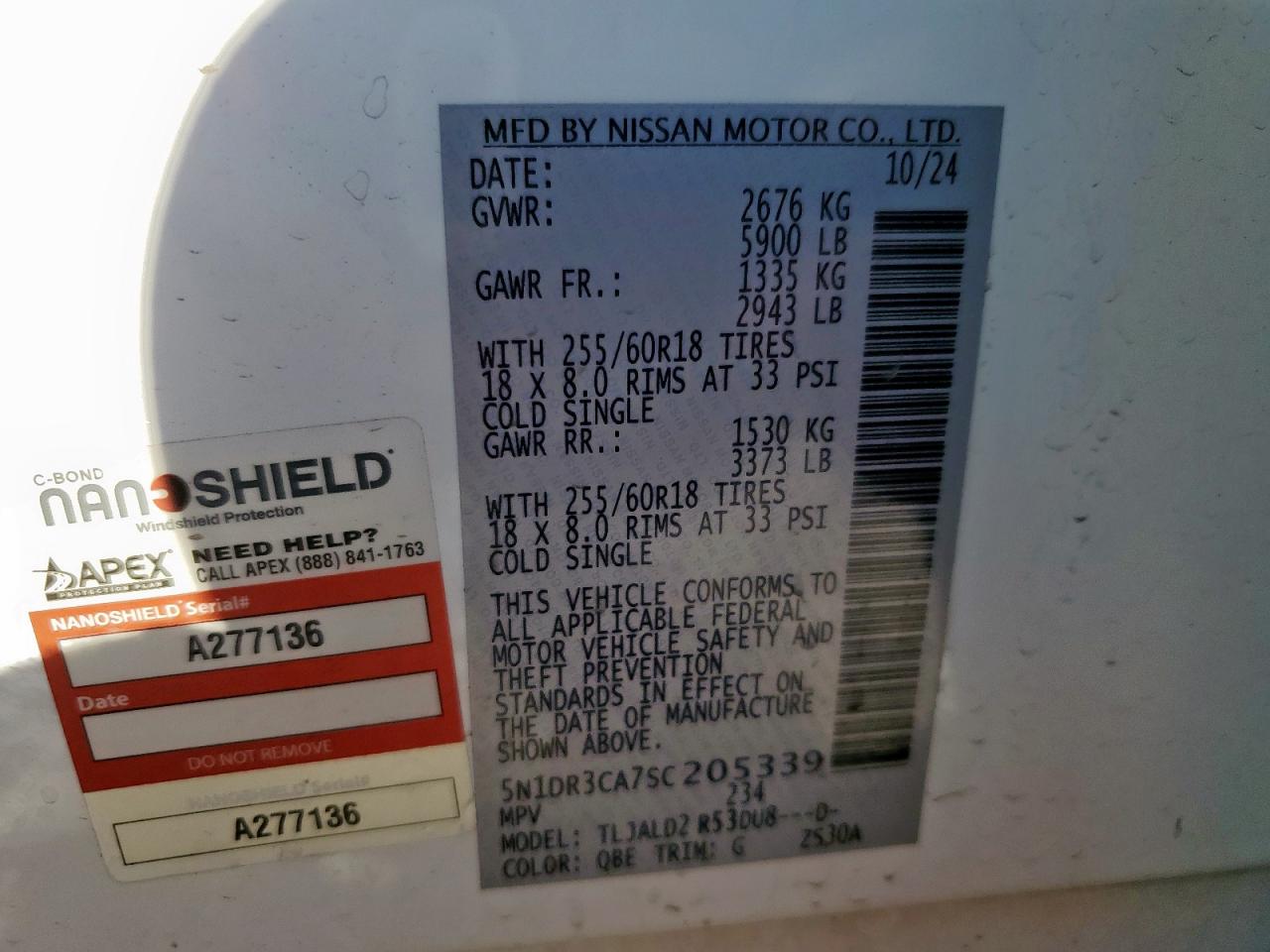 NISSAN PATHFINDER 3.5 2025 г.в., (5N1DR3CA7SC205339) из США