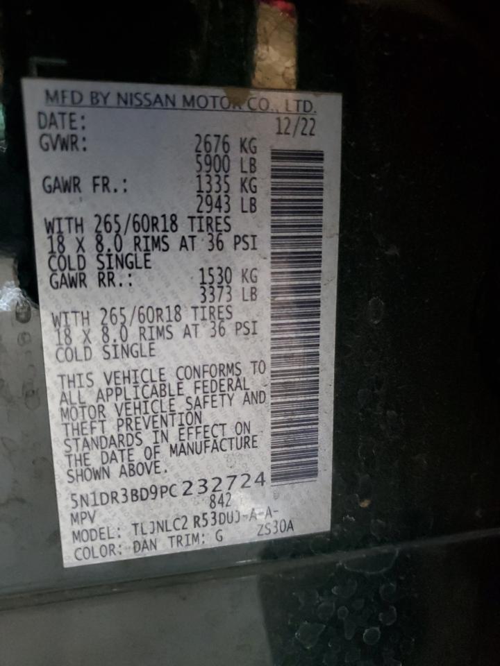 NISSAN PATHFINDER 3.5 2023 г.в., 4x4 с передним приводом (5N1DR3BD9PC232724) из США