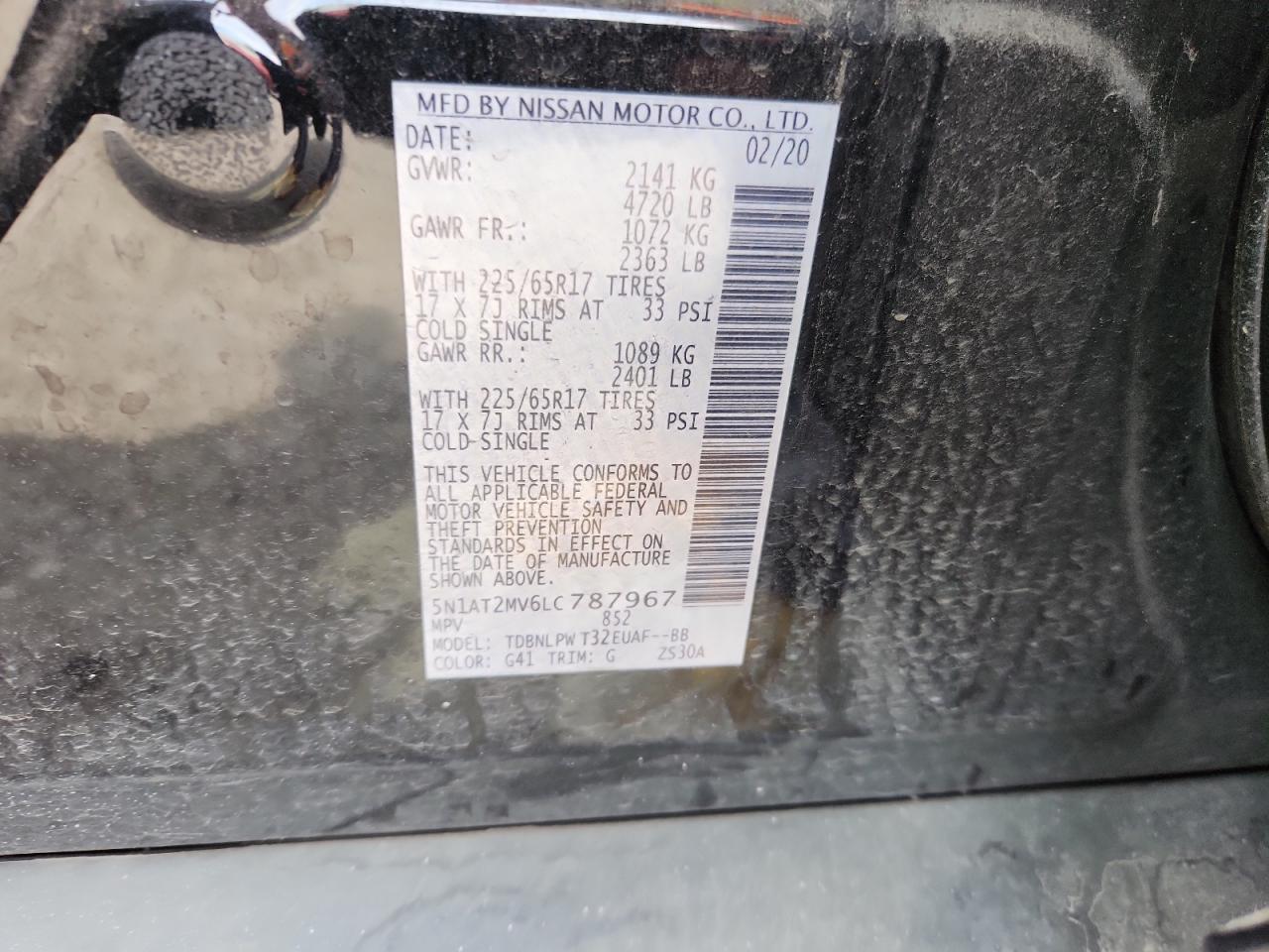NISSAN ROGUE 2.5 2020 г.в., Полный привод (5N1AT2MV6LC787967) из США