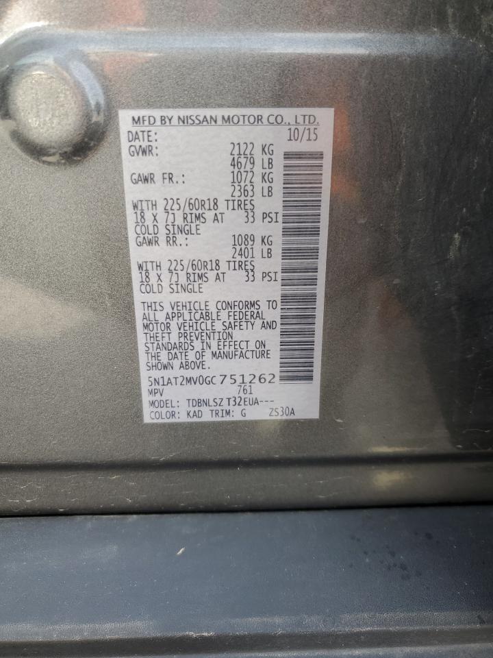 NISSAN ROGUE 2.5 2016 г.в., Полный привод (5N1AT2MV0GC751262) из США