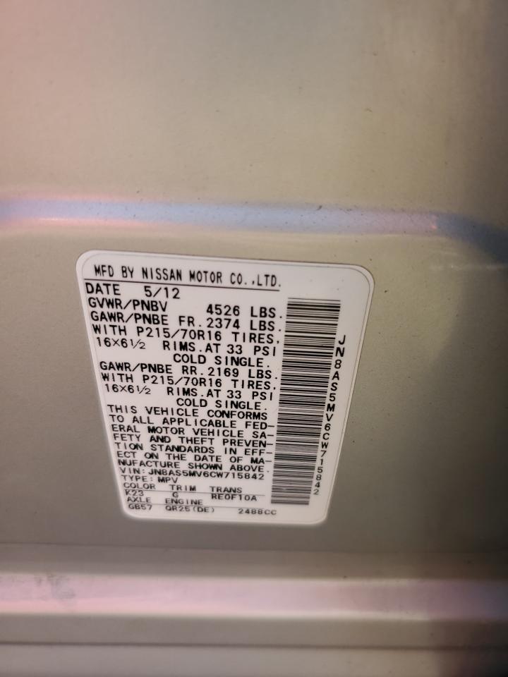 NISSAN ROGUE 2.5 2012 г.в., Полный привод (JN8AS5MV6CW715842) из США
