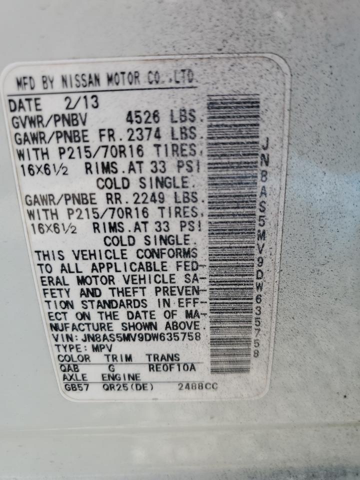 NISSAN ROGUE 2.5 2013 г.в., Полный привод (JN8AS5MV9DW635758) из США