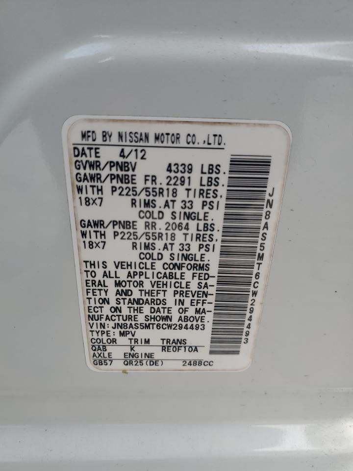 NISSAN ROGUE 2.5 2012 г.в., (JN8AS5MT6CW294493) из США