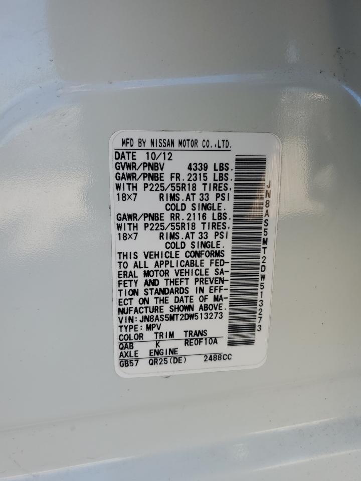 NISSAN ROGUE 2.5 2013 г.в., (JN8AS5MT2DW513273) из США