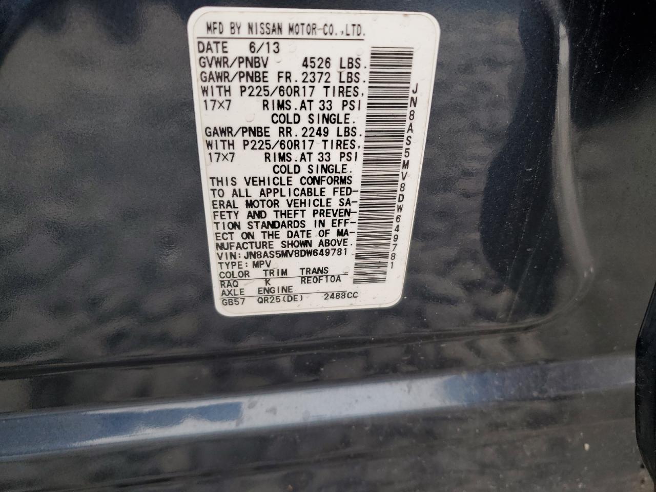 NISSAN ROGUE 2.5 2013 г.в., Полный привод (JN8AS5MV8DW649781) из США