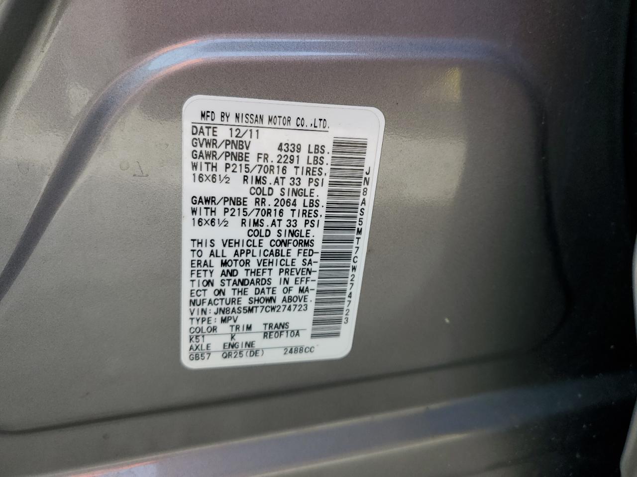 NISSAN ROGUE 2.5 2012 г.в., (JN8AS5MT7CW274723) из США