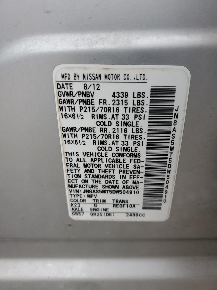 NISSAN ROGUE 2.5 2013 г.в., (JN8AS5MT5DW504910) из США