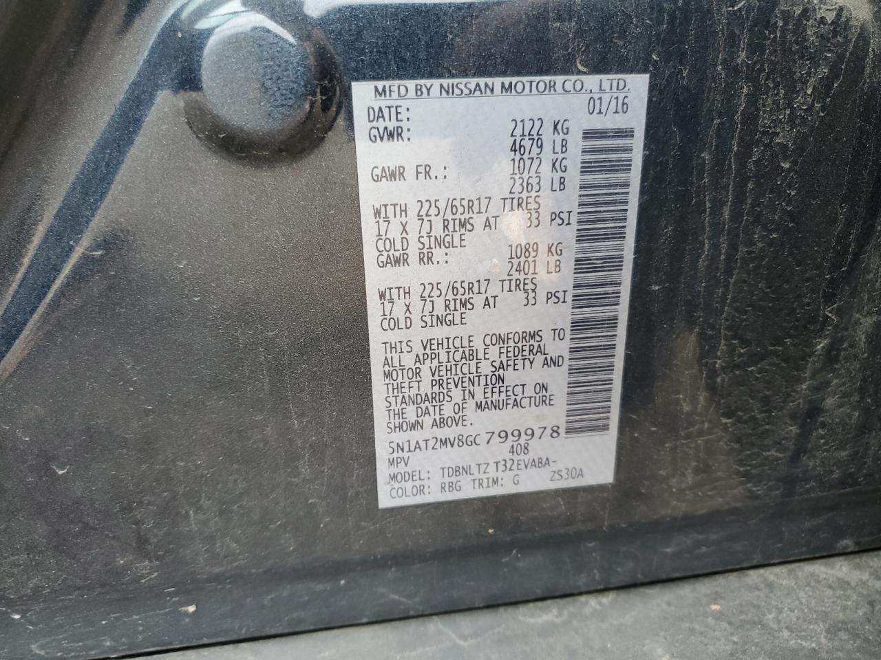 NISSAN ROGUE 2.5 2016 г.в., Полный привод (5N1AT2MV8GC799978) из США