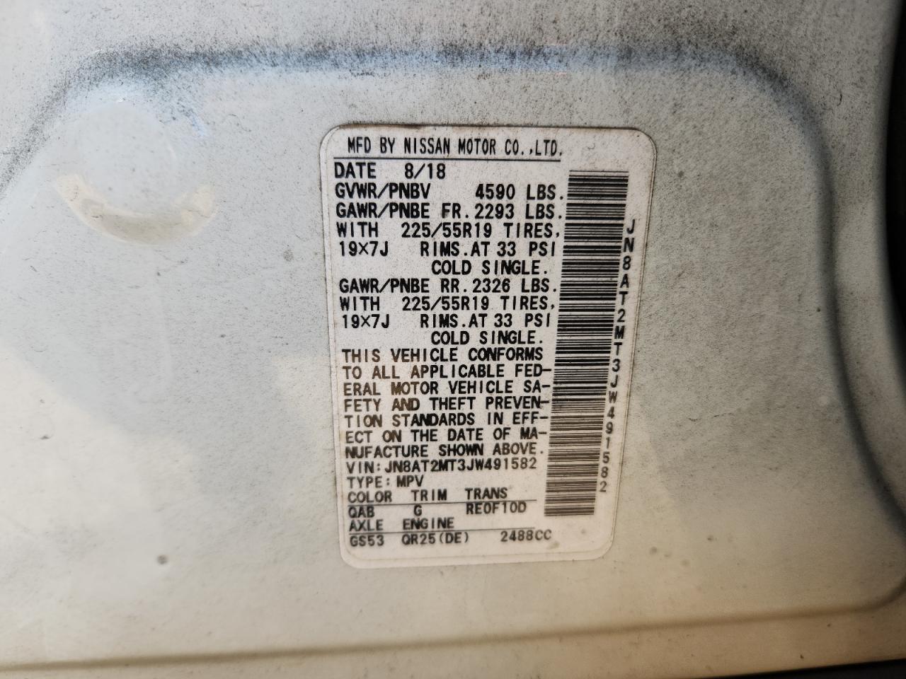 NISSAN ROGUE 2.5 2018 г.в., (JN8AT2MT3JW491582) из США