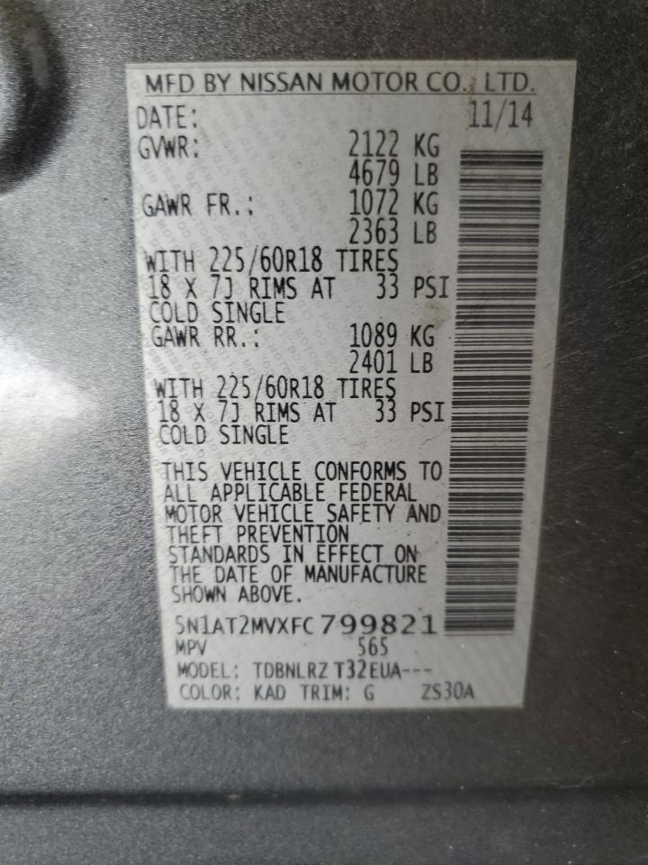 NISSAN ROGUE 2.5 2015 г.в., Полный привод (5N1AT2MVXFC799821) из США