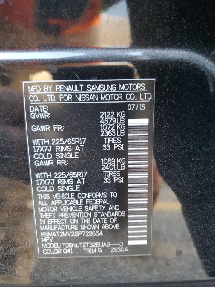 NISSAN ROGUE 2.5 2016 г.в., Полный привод (KNMAT2MV2GP723654) из США