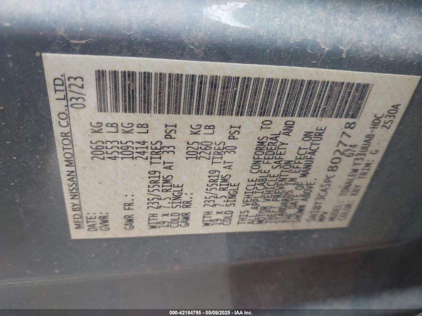 NISSAN ROGUE 1.5 2023 г.в., Передний привод (5N1BT3CA5PC802778) из США