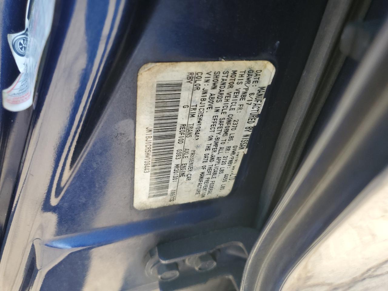 Цвет СинийЦилиндры 4Привод Полный приводVIN JN1BJ1CR5HW109443Состояние Заводится и едет (проверено)Повреждение Передняя или задняя